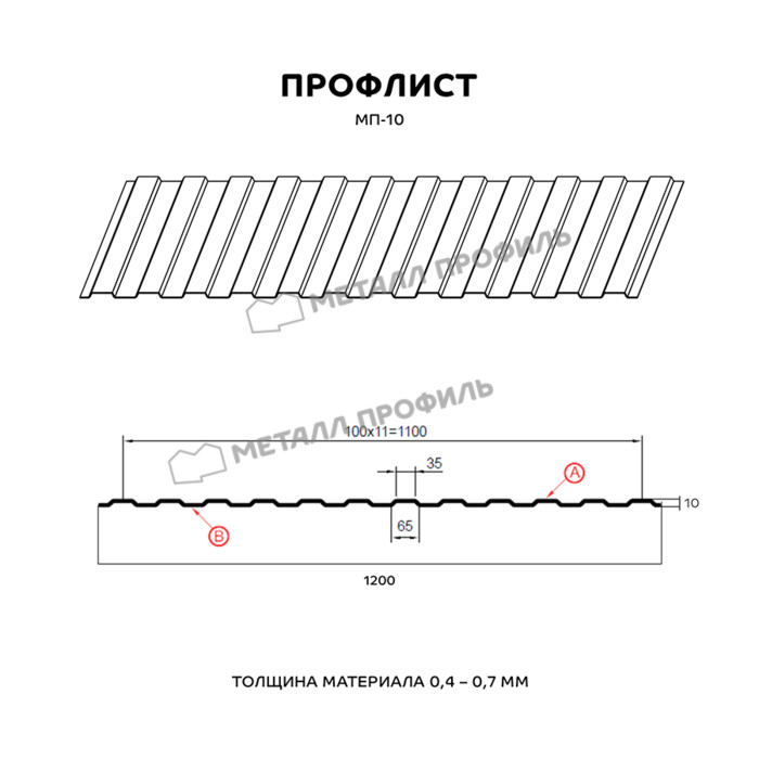 Профлист Металл Профиль МП-10 0.35 и менее Цинк Бесцветный | A