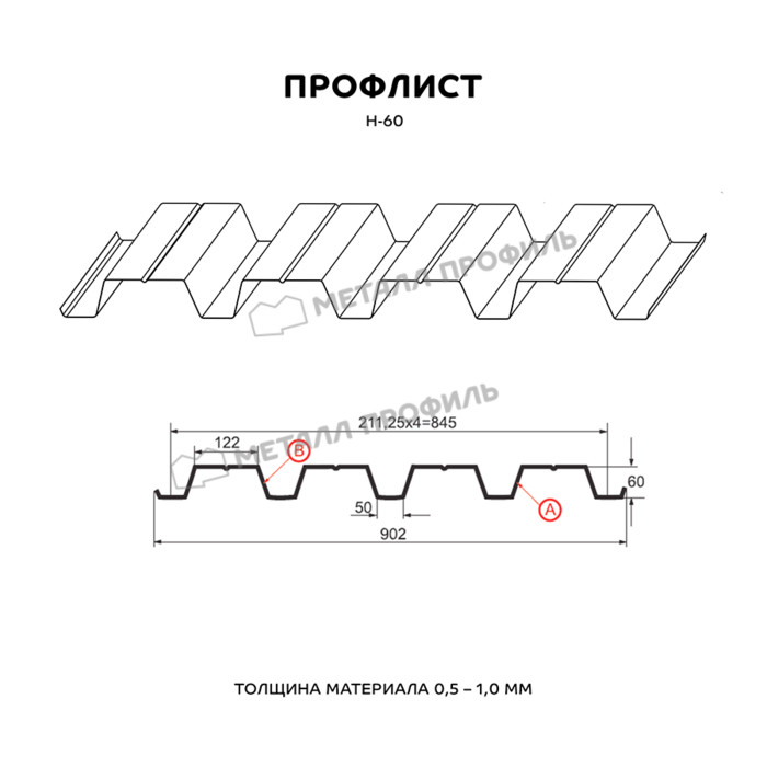 Профлист Металл Профиль Н-60 0,9 Цинк Бесцветный Показать информацию