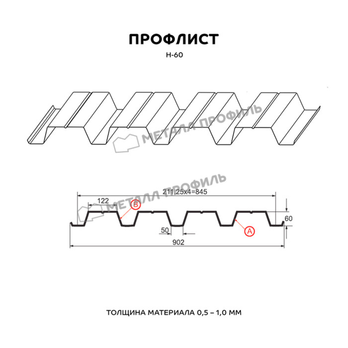 Профлист Металл-Профиль Н-60 ECOSTEEL® 0.5 мм Белый Камень